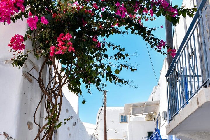 Next, visit a renowned family winery, where tradition meets innovation. Enjoy a guided tour of the modern production facilities and savor three local wines, each reflecting the unique terroir of Paros.